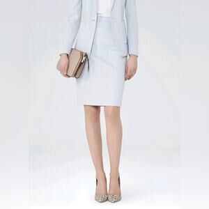 REISS Harloe Textured Pencil Skirt in Light Gray Size 10 Frosted Mint