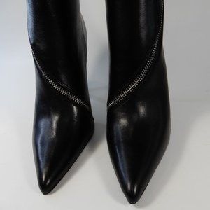 REISS Hoxton Leather Knee High Heels BOOTS US 38 7 Black Point Toe Zip NEW