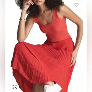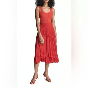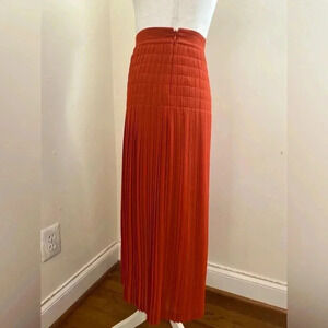 REISS Izzie Pleated Burnt Orange Midi Skirt Sz 2