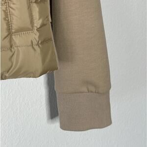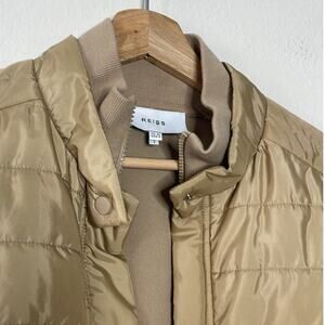 REISS JADA HYBRID JACKET SIZE S.Quilted Front, Upright Collar, Zip And Snap-Button Closure Plus Two Handy Side Pockets. Upright Collar. Zip-Through Design .Snap-Button Closure.Quilted Front.Cuffs To Long Sleeves. nude color. Pre-owned great condition. pit to pit 19", length 23"