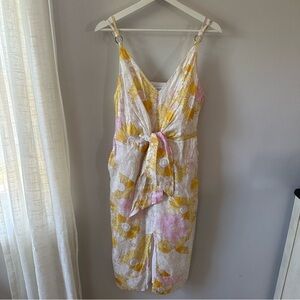 The Kay in a floral print is a modern take on summer chic. The refined V-neckline and tie waist detail offer a unique take on elegance. Crafted in a lightweight linen, this midi-length piece lends itself to a slender finish. Pair with barely-there sandals to complete this classic look.