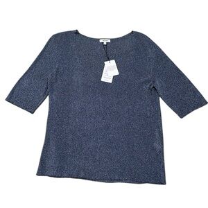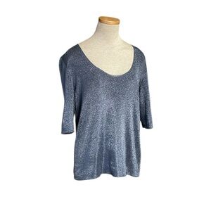 REISS Knit Top NWT Blue Metallic Half Sleeve Scoop Neck Stretchy Size Large