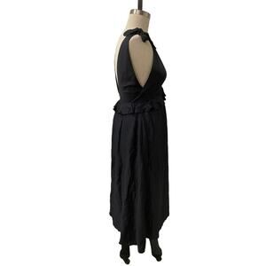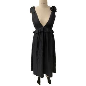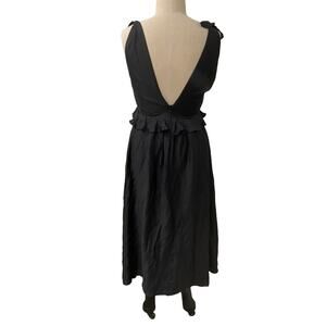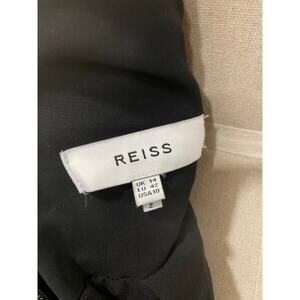 REISS Laura Plunge Neck Taffeta Ruffled Midi Dress Black 10