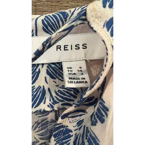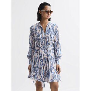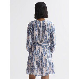 REISS MARNIE PRINTED BELTED LONG SLEEVE MINI DRESS IN PINK/BLUE SIZE 2