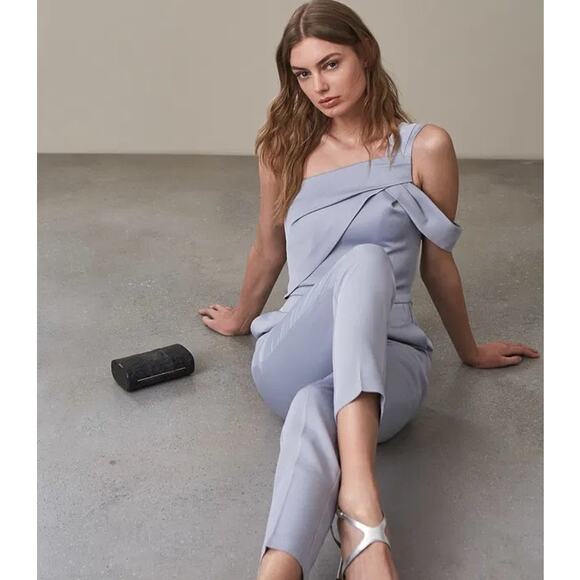REISS Mandi Silver Lake One-Shoulder Jumpsuit size 4 MSRP: $445