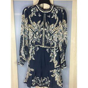 REISS Maria Mini Silk Dress Blue Sz 0 EU 32 Designer Party Wedding Pleated Lux