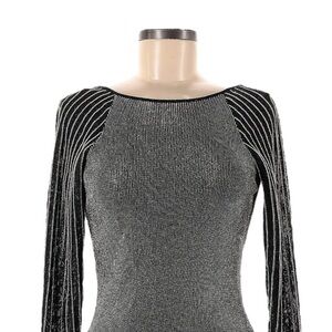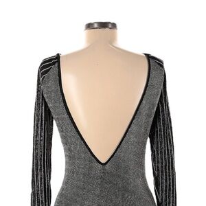 Stunning REISS “Marina” bodycon dress in size M, new with tags. Features a metallic ribbed knit in black and gold, long sleeves, and a dramatic low V-back. Designed with a figure-hugging silhouette, this pullover dress is perfect for cocktail parties, New Year’s Eve, or any glamorous evening event.