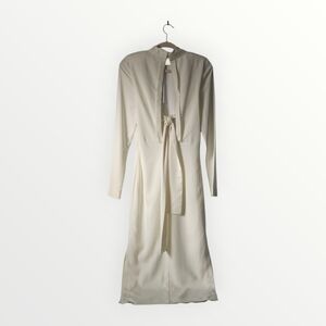 REISS Martha Ivory Long Sleeve Maxi Dress US 4 High Neck Open Back Gown Minimalist Bridal Formalwear New