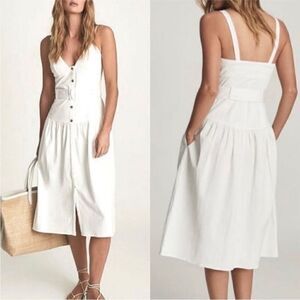 REISS NWT Vita Button Through Midi Sundress White Size 0 MSRP $330