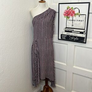 REISS Nia Geometric Print One Shoulder Midi Dress Size 8US