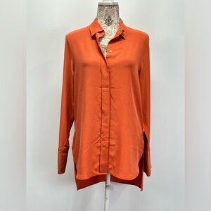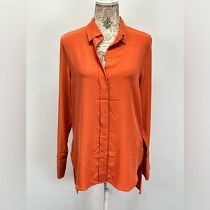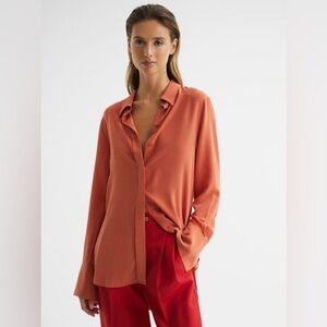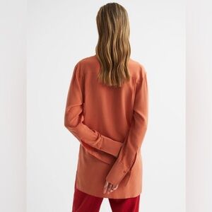 REISS Orange EDEN 💯 Silk long sleeve button down shirt size 4