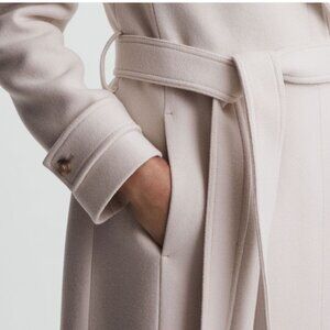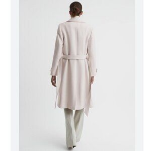 REISS Petite Relaxed Wool Blend Mid Length Neutral Belted Coat Size 12 NWT