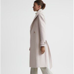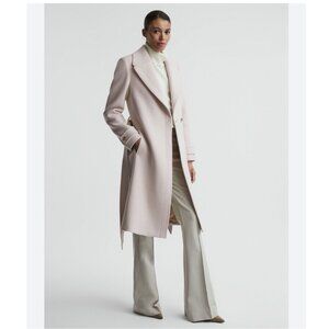 REISS Petite Relaxed Wool Blend Mid Length Neutral Belted Coat Size 12