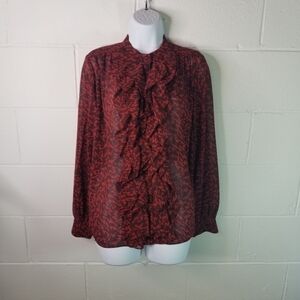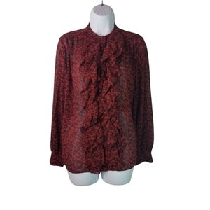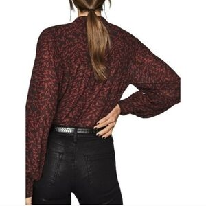 REISS Pippa zigzag ruffle printed long sleeve blouse