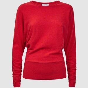 REISS Red Lisa Crewneck Ruched Sleeve Wool Cashmere Sweater Size S