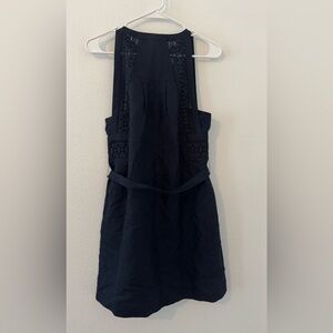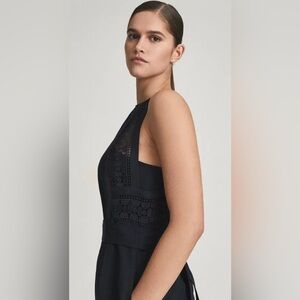 REISS Rhona Embroidered Mini Dress Navy Linen Blend Cocktail Old Money NWT Sz 6