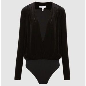 REISS Rosalba Velvet Plunge Bodysuit, Black - Large