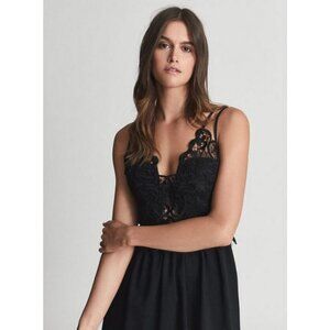 💕REISS💕 Serena Lace Bodice Midi Cocktail Dress ~ Black 4 US NWT