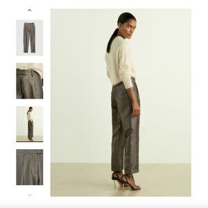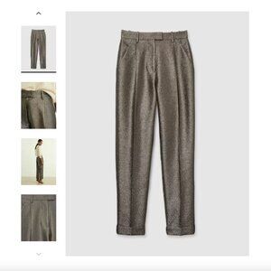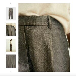 NWOT-REISS Sienna Holiday Sparkle Tapered High Waist Pleated Trousers in Dark Gold Ankle Cropped