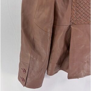 REISS Tan Leather Blazer Jacket Basketweave Textured size medium
