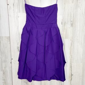 REISS Tiered Strapless Cocktail Dress Purple Ruffle Party Wedding Guest Size 2