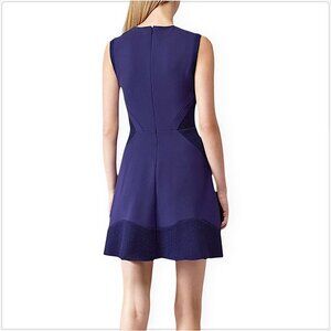 REISS Toluca Blue Passion Textured Trim Sexy Fit and Flare Stretch Dress Size 2