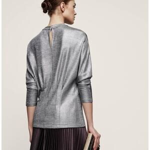 REISS Top Size Extra Small Gale Dolman Sleeve Designer Luxury Metallic Silver