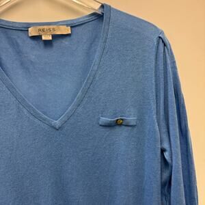 REISS V-Neck Linen Blend Blue Lightweight Sweater Sz Large L