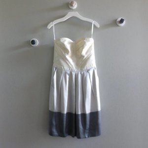 REISS WOMEN GREY COLOR BLOCK RACHEL TUBE BUSTIER SILK DRESS