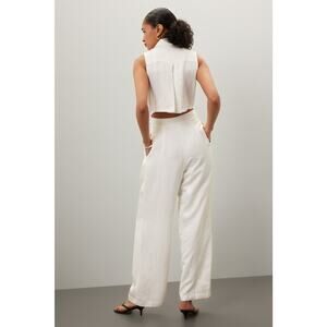The REISS White Wide-Leg Jumpsuit in US Size 2 combines tailored elegance with a modern silhouette. Featuring a crisp collared neckline and front button closure, it offers a polished, structured look. The matching belt cinches the waist for a flattering shape, while the wide-leg cut adds sophistication and ease of movement. Crafted from a lightweight, breathable fabric, it’s perfect for warm-weather wear or transitional styling. The clean white hue enhances its versatility, making it ideal for both daytime events and evening occasions. A chic, all-in-one statement piece for effortless dressing.