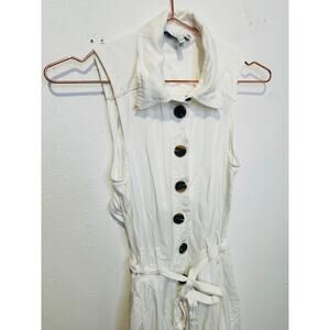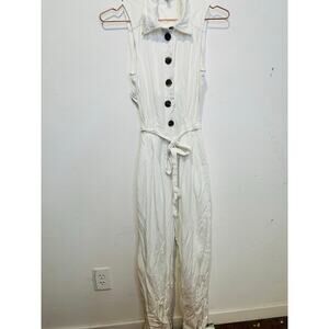 REISS Women's White Collared Front Button Belted Wide Leg Jumpsuit Size US 2