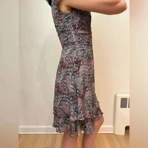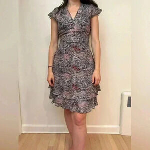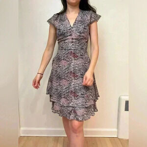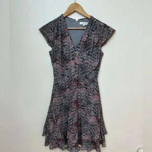 REISS printed tiered flutter sleeve v neck fit and flare mini sun dress XS