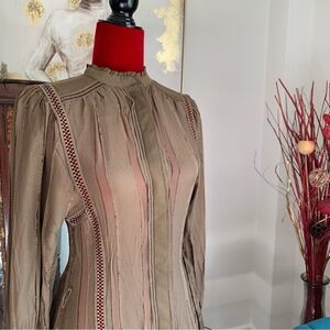 REISS Harriet Lace Trim Mini Dress Green Khaki 0