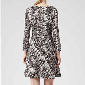 REISS Heidi Snake Print Flared Dress, size 4. Excellent condition. Fully lined. Side zip. Dry clean only. Care & content tags in photos. 100% polyester