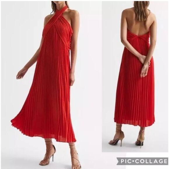 REISS-ROYA HALTER NECK PLEAT MIDI DRESS (new)