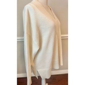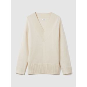 REISS SEREN OVERSIZED WOOL CASHMERE V-NECK JUMPER IN IVORY SIZE LARGE