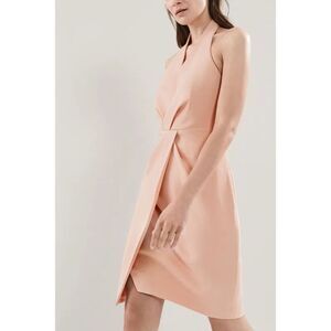 • Crossover halter V-neck, sleeveless, fixed front twist