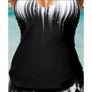 Two-Piece Set for Women, Featuring a Stylish Black and White Color Scheme, with Lace-Up Details. This Set Is a Halter Neck Swimsuit, And Is Also Composed of Two Shades. The Fashionable Swimsuit Is Designed for Beachwear, And Is Perfect for The Resort