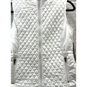Relativity Outwear presents a chic, sleeveless women's vest in size S. Fashioned in a crisp white color, this polyester vest is the perfect blend of comfort and style.