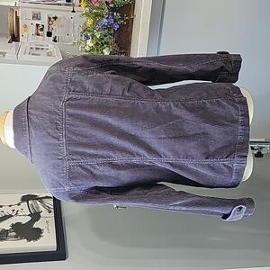 So cute is this gray cordery jacket. Great for the upcoming Spring. Size medium, Pit to pit flat measurement is 19". sleeves are 18". The top to bottom length is 26". Shoulders are 16". Very good new condition. Consider making a bundle and get an even better offer.
