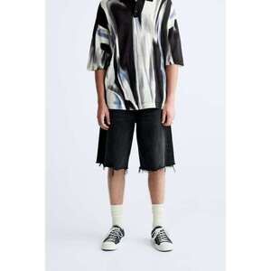 Relaxed fit shorts. Five pockets. Distressed washed effect. Uneven hem. Front button closure. Runs Small