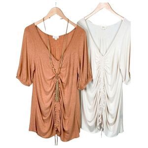 Features self adjustable string tie adjustment on the front with low V-Neckline