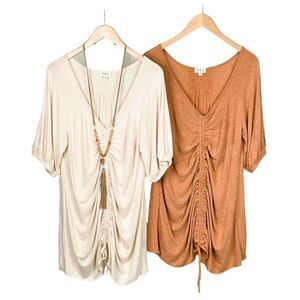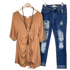 RELAXED knit top w/ Adjustable Tie Front