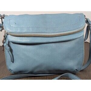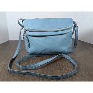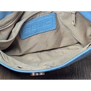 RELIC Cora Leather Expandable Crossbody Bag Purse Double Zip Baby Blue Key Chain