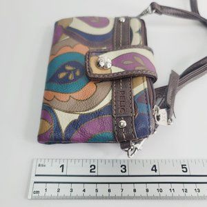 RELIC Teal Purple & Brown Faux Leather Boho Paisley Crossbody Mini Purse Wallet