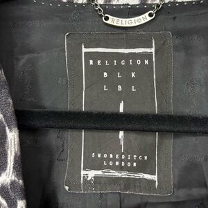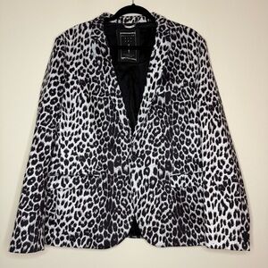RELIGION BLK LBL Suede Cheetah Print Black White Pockets Suit Jacket