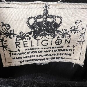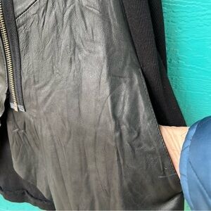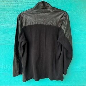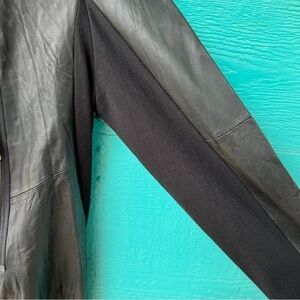 RELIGION GOTH LIGHT PAPER DRAPED LEATHER & KNIT MOTO JACKET SIZE 12 BLACK
