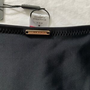 Experience timeless elegance with the RELLECIGA Black Bikini, featuring a sleek bandeau top and a classic mid-rise bottom. This minimalist design ensures a versatile and chic look for any beach or poolside occasion.