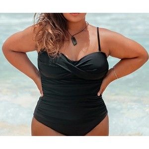RELLECIGA Black One Piece High Cut Bandeau Adjustable Straps Swimsuit Size Large