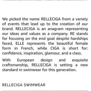 Relleciga bikini top. White, with crossed lacing look strips between the foam cups. Self tie halter and back straps. Size small fits 32B-34A-34B. Pair with any swim bottom for fun in the 🌞 sun!